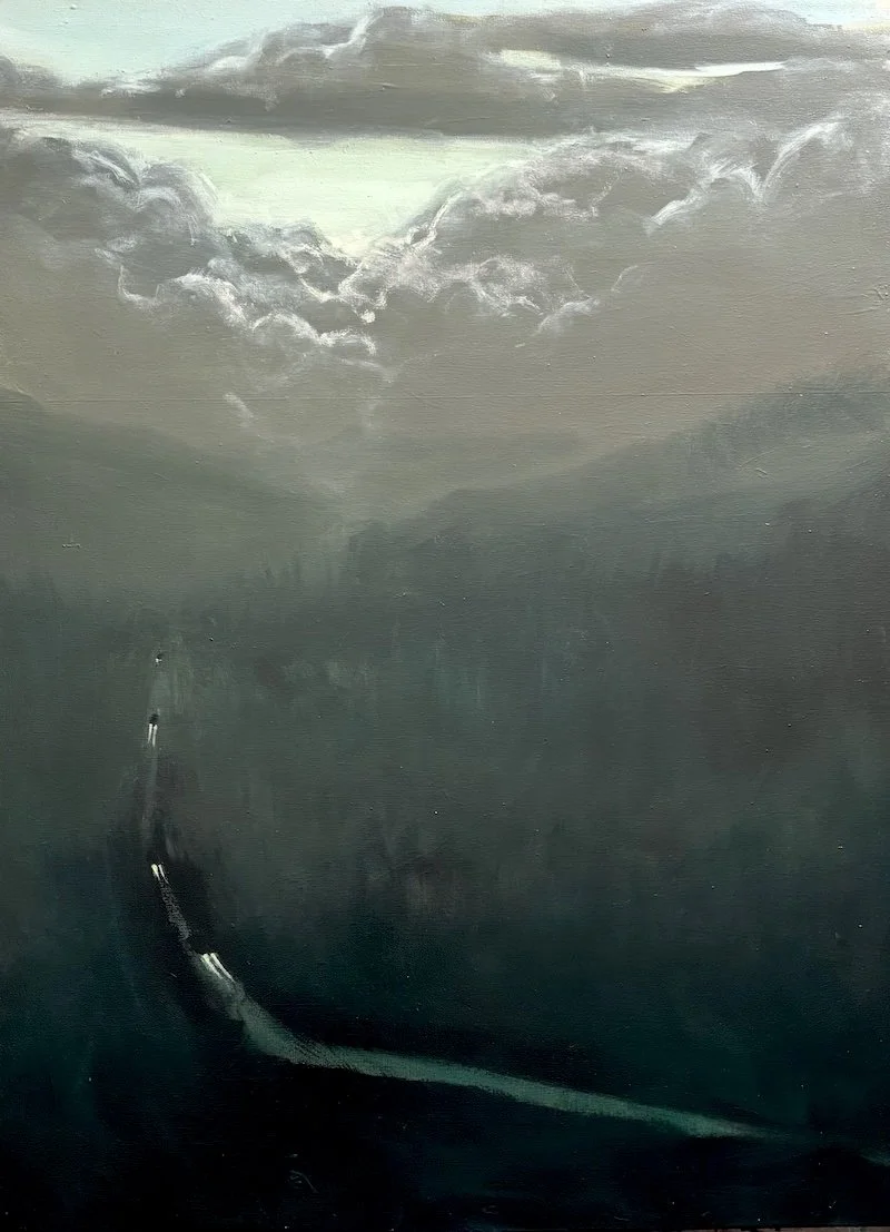 It seemed the fog had a life of its own β shifting, crawling, swallowing things whole and giving them back altered, Oil on Canvas, 30"x40"
